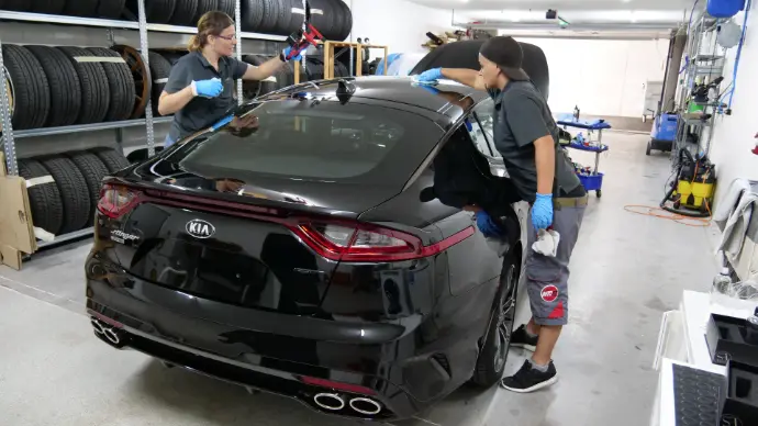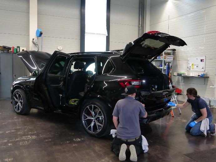 Diese intensive Vorarbeit ist auch der zeitaufwendigste Teil des Prozesses. Daher bleibt Ihr Fahrzeug in der Regel ca. 4 Arbeitstage bei uns, um ein makelloses und langlebiges Ergebnis zu gewährleisten.