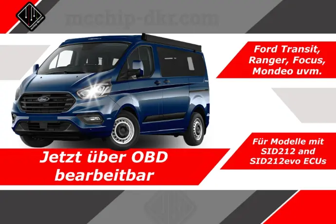 Nach einmaliger Vorbereitung (Bench) wird das Steuergerät (SID212 / SID212evo) freigeschaltet (OBD Unlock) und kann anschließend über die OBD-Schnittstelle programmiert werden. Ein Versand des Steuergeräts ist nicht mehr nötig. Das Verfahren ist vollständig kompatibel mit offiziellen Ford-Diagnosegeräten und Werkstatt-Updates.